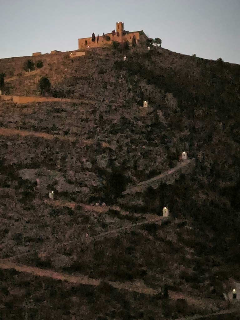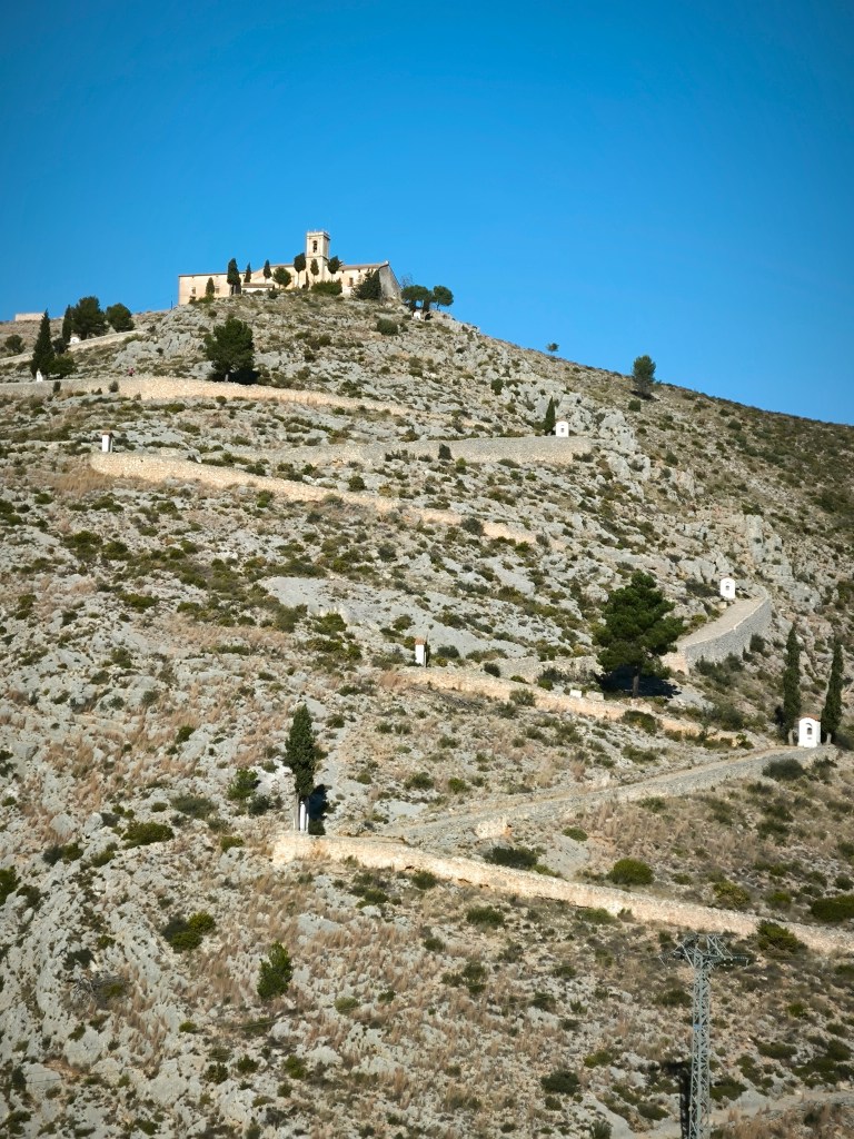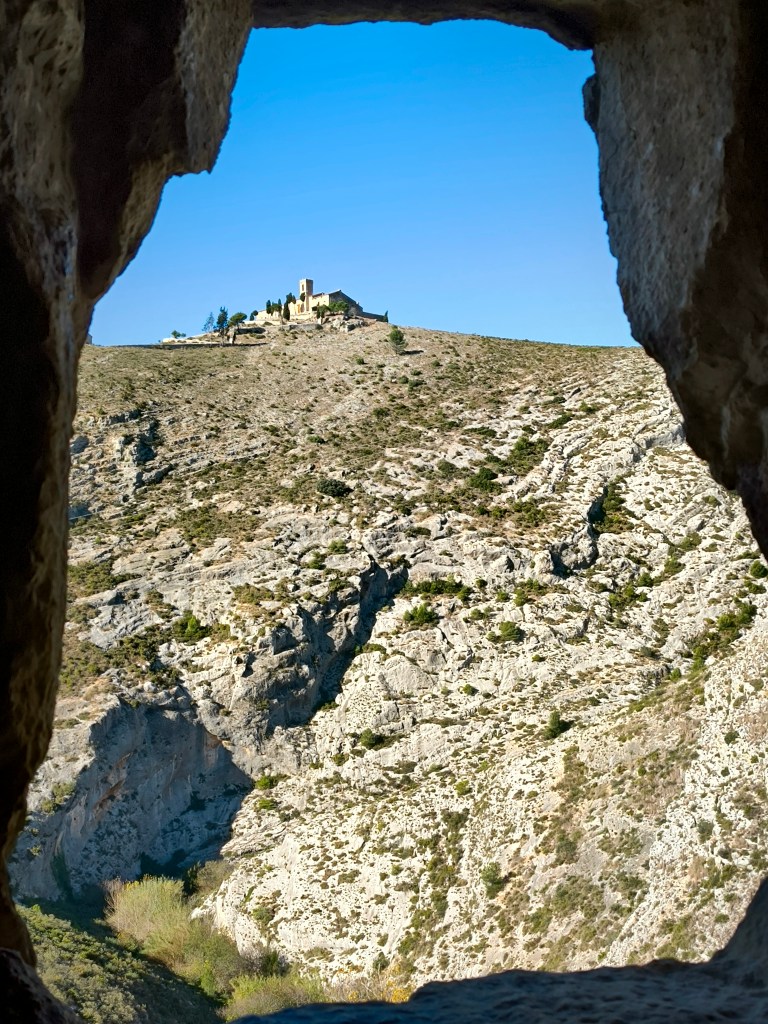 Desde la distancia vemos el Castillo de San José. Fortaleza del siglo XI, creada por los musulmanes. Está sobre la roca, en la parte más elevada del municipio.