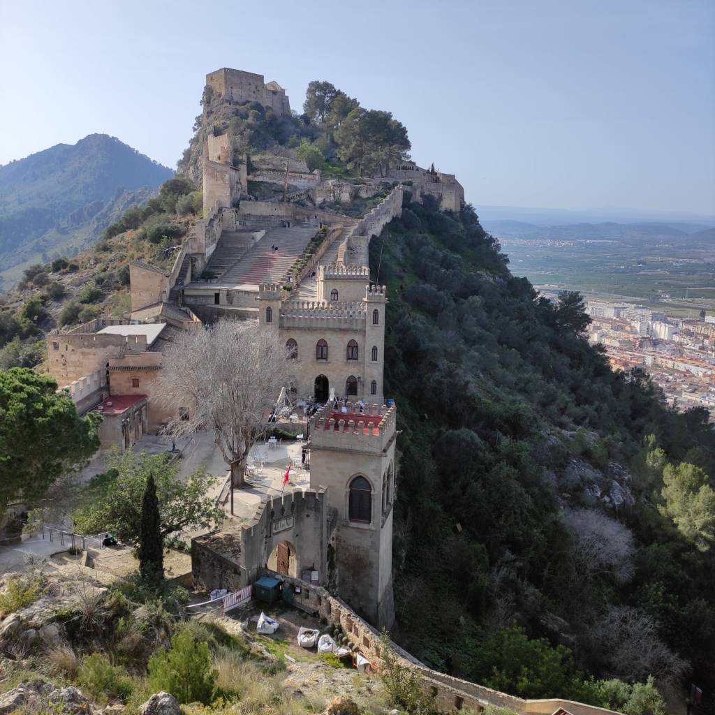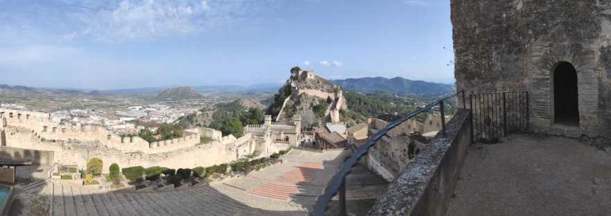 Un poco alejado del centro medieval podemos ver la plaza de toros. Hay visitas concertadas pero si te aproximas por la parte derecha hay una puerta abierta desde la cual se puede ver muy bien. Es la plaza más antigua de la Comunidad Valenciana y muy original porque está excavada en roca viva, tanto las gradas como los burladeros. Su historia es curiosa ya que se construyó por una crisis que afectó a la industria textil en el siglo XIX. Varios empresarios y accionistas se reunieron para solucionar el problema de desempleo y decidieron construir una plaza para poder emplear a los trabajadores afectados. Tiene un aforo de 3760 personas y dispone de matadero, corrales, enfermería y capilla.