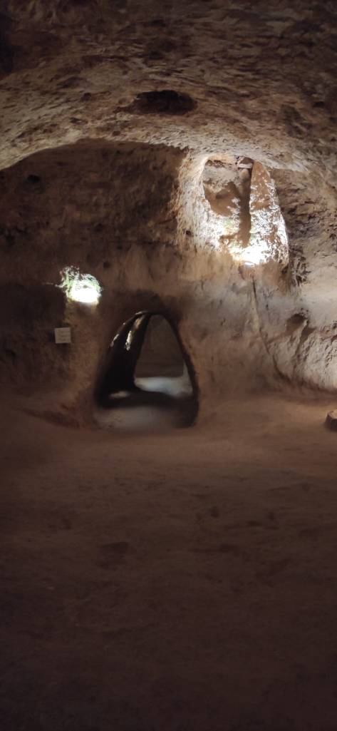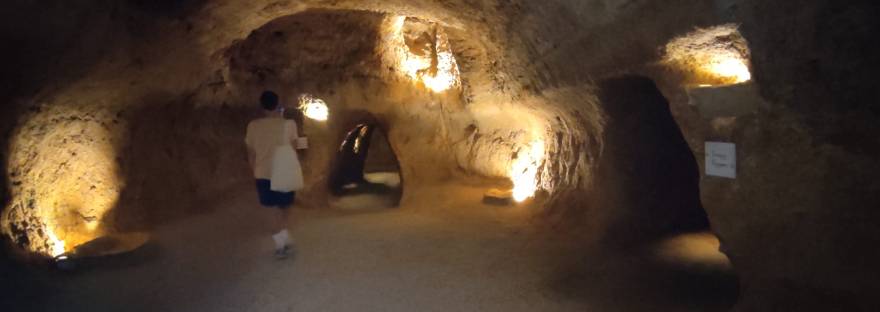 Si te atreves te recomiendo visitar les Covetes dels Moros. Son cincuenta cuevas excavadas en roca, y alguna están inacabadas, se hacían de fuera hacia dentro y se supone que eran lugares de almacenaje del siglo X cerrados con puertas de madera y los tamaños varían dependiendo de las necesidades de cada familia. Es difícil imaginar la forma de acceder a través de cuerdas y argollas y lo peculiar es que su forma de construcción evita que entre el agua de lluvia. El acceso ha de ser sin mochilas ni cámaras o chaquetas gruesas. La verdad es que a mí personalmente me dio un poco de agobio por los lugares estrechos por los que hay que pasar pero el guía fue muy atento y te va ayudando a que te superes hasta que consigues hacer el circuito entero. A pesar del mal ratito la verdad es que mereció la pena. Te dejo alguna foto de nuestra experiencia.