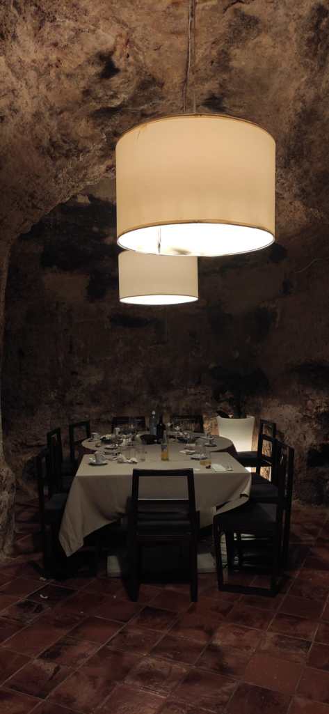Ya para terminar os diré que todo el esfuerzo de rutas y visitas nos llevó a reponer fuerzas de la mejor manera posible, disfrutando de la gastronomía del lugar. Hay varios lugares pero nosotros probamos el restaurante Cancell y el Mesón Gandía y fueron todo un acierto. En ambos la calidad de la comida y el servicio fue muy bueno. Los vinos de mucha calidad y a un precio razonable. El menú Cancell está muy rico y las carnes, la pata de pulpo o la verdura a la brasa del Mesón Gandía fueron espectaculares. Además el salón de abajo está excavado en roca y es muy original. No olvides reservar porque ambos son muy populares. El único problema que tuvimos fue que el domingo la mayoría de restaurantes cierran, así que tenlo en cuenta si vas a quedarte, nosotros terminamos comprando un bocata muy rico en Bar Chimo, en la plaza del Ayuntamiento. Otro de los bares que no pudimos probar pero nos recomendaron es el Bar Solbes. Y no olvides comprar algún producto típico de la zona, a cinco minutos de la plaza del Ayuntamiento hay una tienda donde tienen de todo y a buen precio, mantas, licores, vinos, pericana….y además te dan a probar algún licor como el herbero, el licor más típico hecho con hierbas de la Sierra de Mariola.
